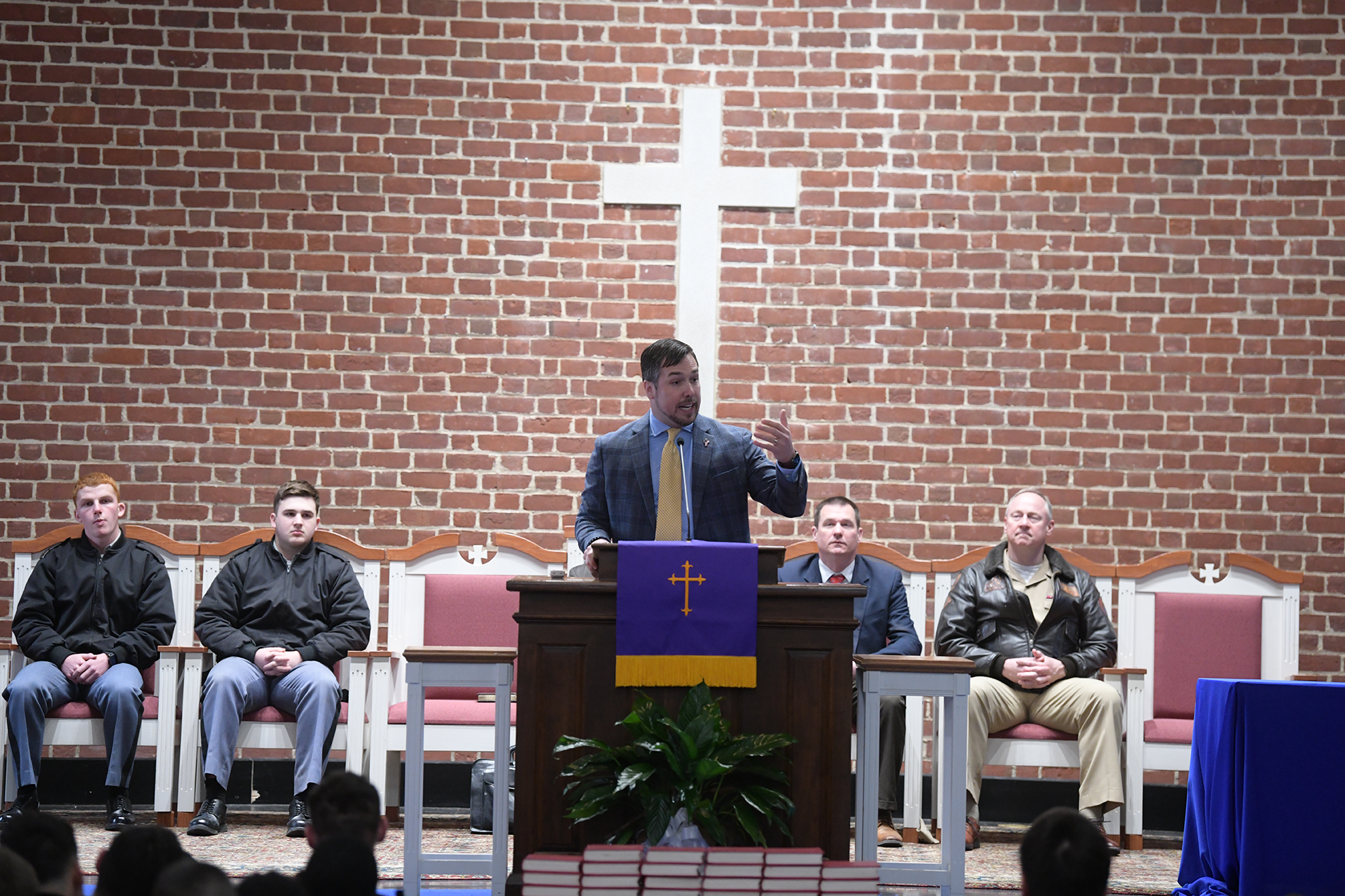 Fork Union Military Academy welcomed Lee Mitchell, Executive Director of Needle’s Eye Ministries in Richmond, Virginia, to campus Thursday morning as part of its ongoing Christian Leadership Series.